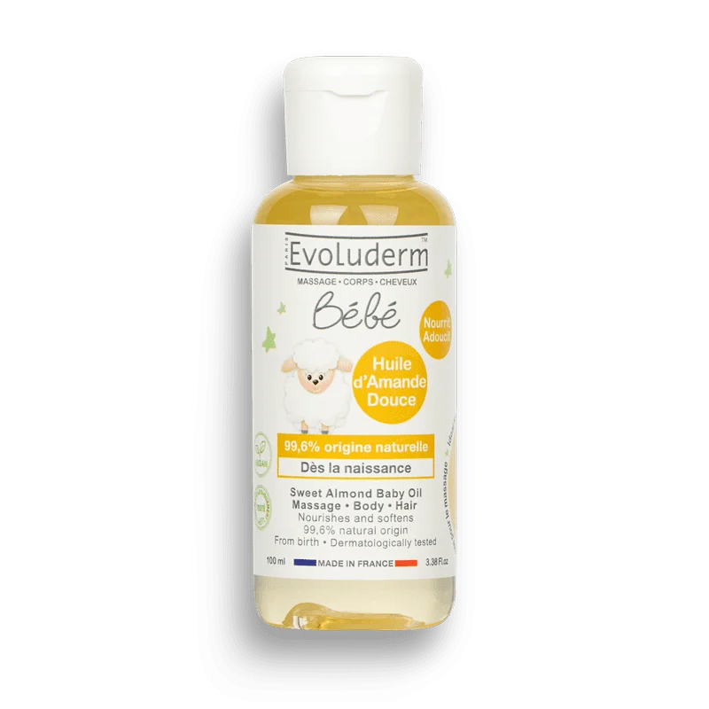 Hypoallergenic and specially formulated to meet the needs of babies’ fragile skin, the Sweet Almond Baby Oil is enriched with pure plant oil. Composed of 99.6% natural Sweet Almond Oil, it softens the body and hair. When used for massage, this oil envelops the skin in a moisturizing* veil and protects it against external aggression. Vitamin E in the formula helps to protect the balance of baby’s skin and combat skin dryness. Result: you can share a moment of infinite tenderness with your baby while naturally nourishing their skin. This product comes in a 100 ml size so that you can take care of your baby’s skin wherever you are.*upper layers of the epidermis.