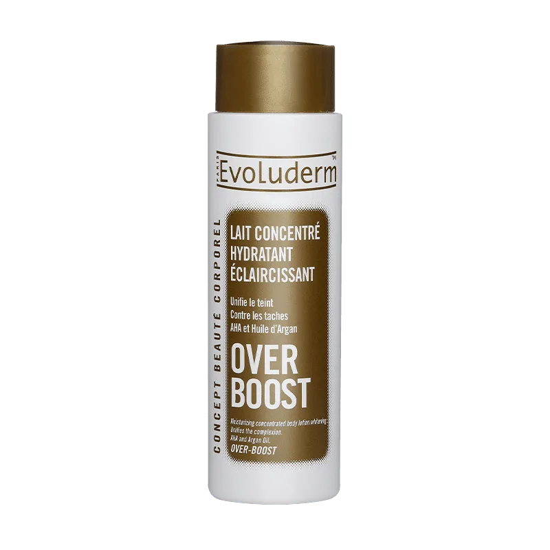 Le Lait Concentré Hydratant Éclaircissant OVER BOOST a été spécialement conçu pour lutter efficacement contre l’hyperpigmentation. Enrichi en AHA et en Huile d’Argan, ce soin unifie la carnation et aide à limiter l’apparition de taches pigmentaires tout en boostant la régénération cellulaire. Les peaux sèches en manque d’éclat sont ravivées par la formule vitaminée de ce soin onctueux. Jour après jour, la peau est sublimée et redevient soyeuse. À chaque utilisation, ce lait parfume délicatement votre corps pour vous offrir un véritable moment de détente. Résultat : Votre peau retrouve sa souplesse et son éclat, votre teint est unifié.
